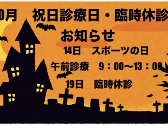 • *10月 祝日診療・臨時休診日のお知らせ*