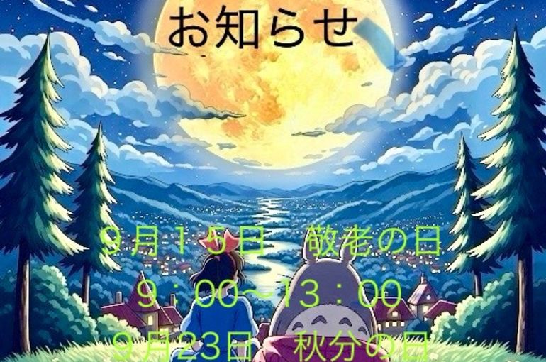 *9月 祝日診療日のご案内*